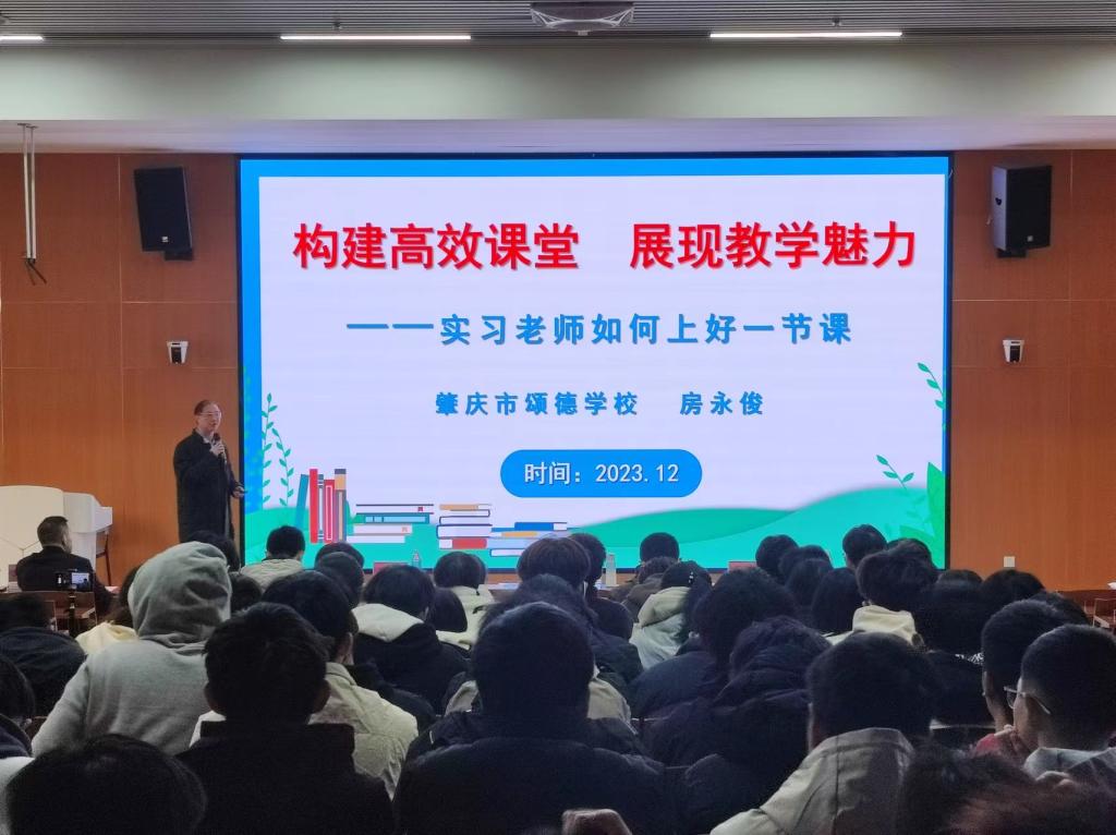 首先,主持人致欢迎辞,介绍了本次讲座的主讲专家和举办意义。紧接着由房永俊副校长以《构建高效课堂,展现教学魅力——实习教师如何上好一堂课》为主题,分享了如何构建高效课堂和展现教学魅力的经验与技巧。学生提问与互动环节中,房校长耐心解答了学生的问题,并给予了建设性的建议。