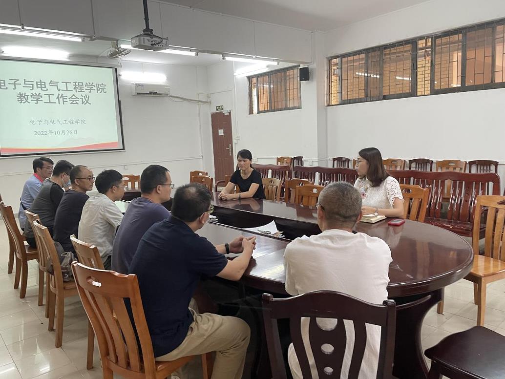 2022年10月26日下午,williamhill威廉希尔官网召开了教学工作会议,与会人员有教学副院长程绪信、电子与通信工程系、电气工程系、物理系以及实验中心主任及专业负责人、教学秘书,会上程绪信副院长向各与会人员传达了学校近期的工作安排,明确了学院各系需要落实的相关工作任务。