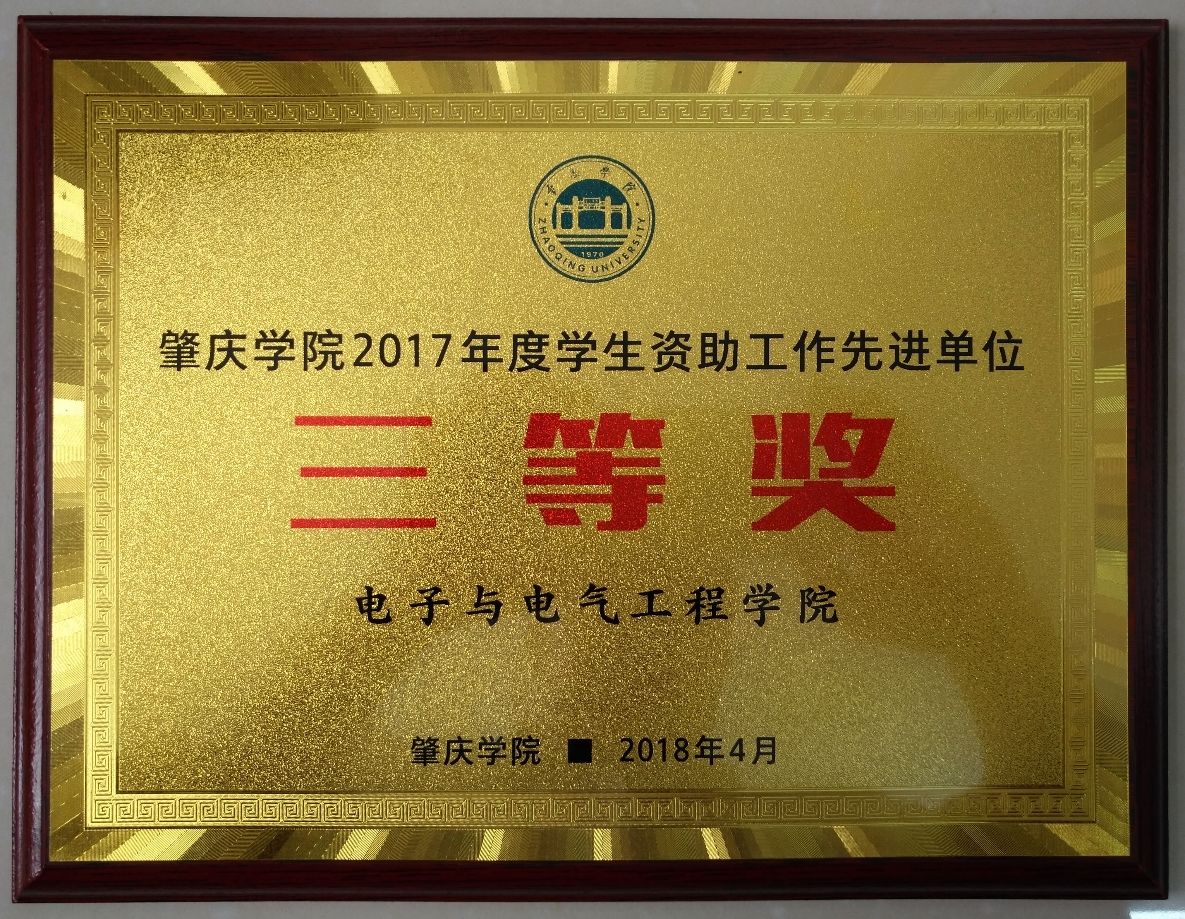 祝贺我院荣获2017年学生资助工作先进单位三等奖