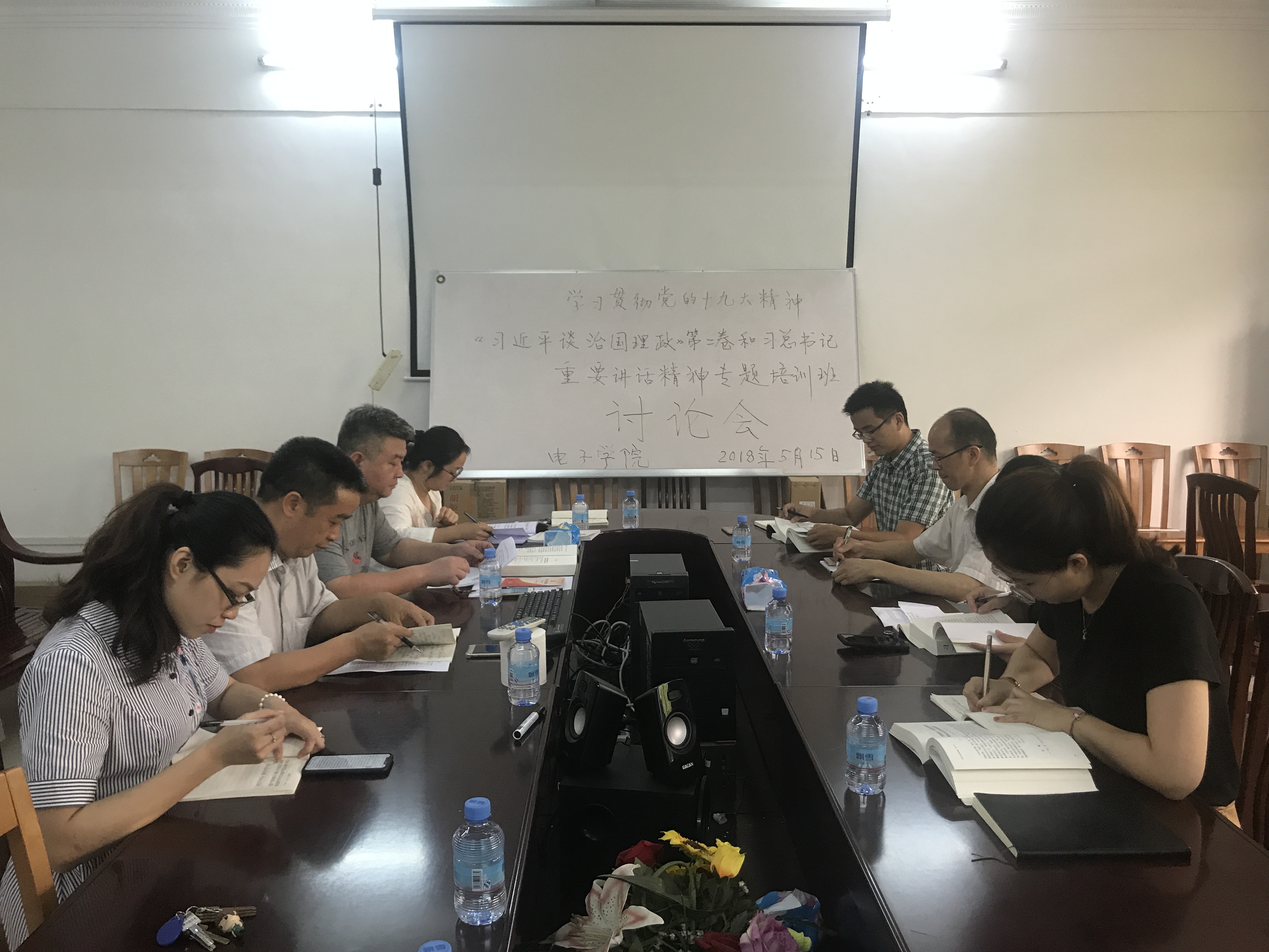 2018年5月15日,我院党委按照学校的统一部署,在学院会议室举行中层领导干部学习贯彻党的十九大精神、《习近平谈治国理政》第二卷和习近平总书记重要讲话精神分组讨论会,学院领导班子成员、各党支部书记、专职组织员等参加了此次讨论会,讨论会由黄伟书记主持。