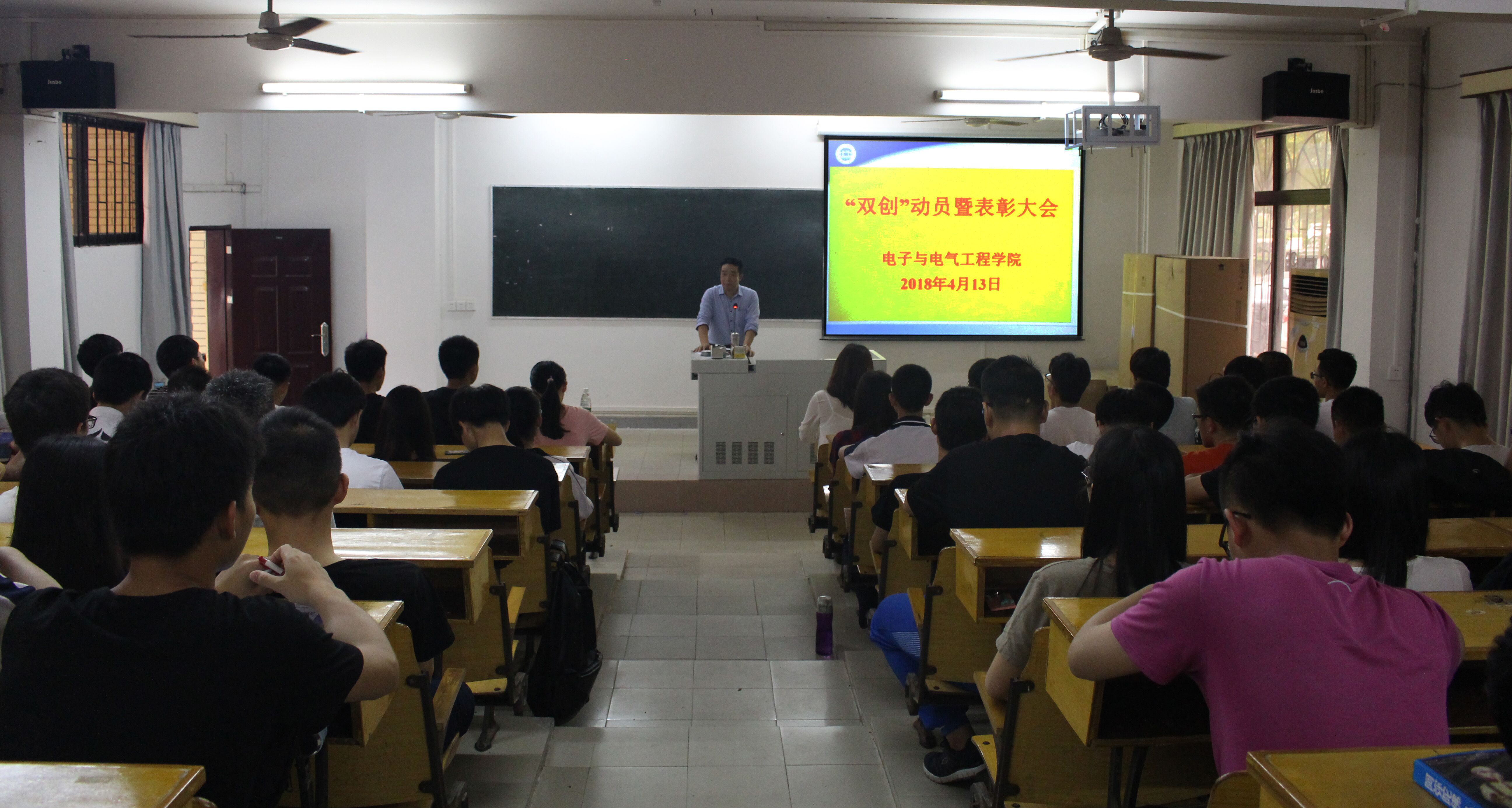 2018年4月13日下午,我院在实验大楼128室召开“双创”动员暨表彰大会,院党委副书记薛日金、辅导员刘浏老师以及学生机构的代表、受表彰的同学共60多人参加了大会。