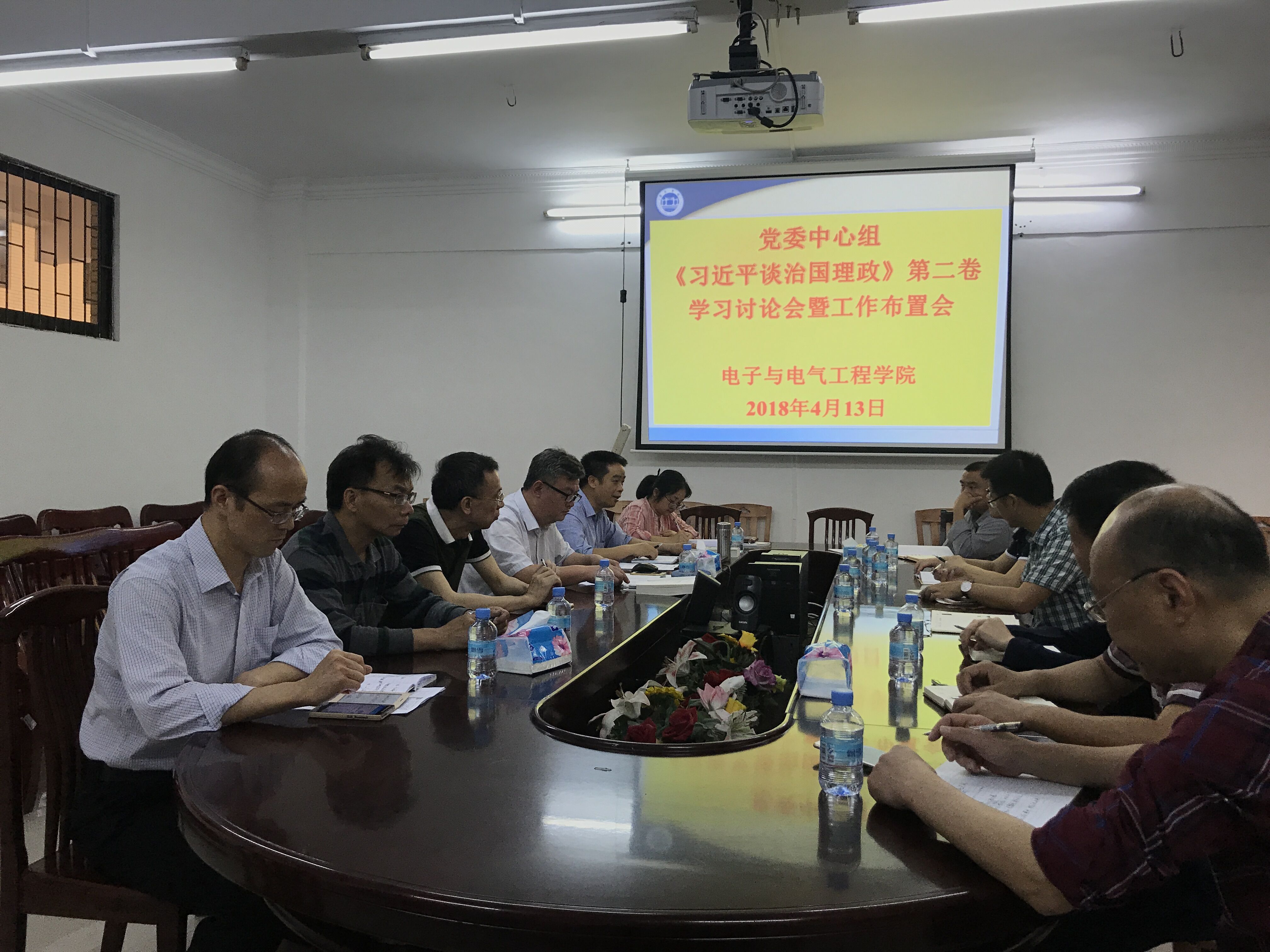 2018年4月13日上午,我院党委中心组在学院二楼会议室举行了《习近平谈治国理政》(第二卷)学习讨论会,参加学习讨论会的有班子成员、党委委员、纪检小组长、各党支部书记等13人,党委书记黄伟同志主持了该学习讨论会。