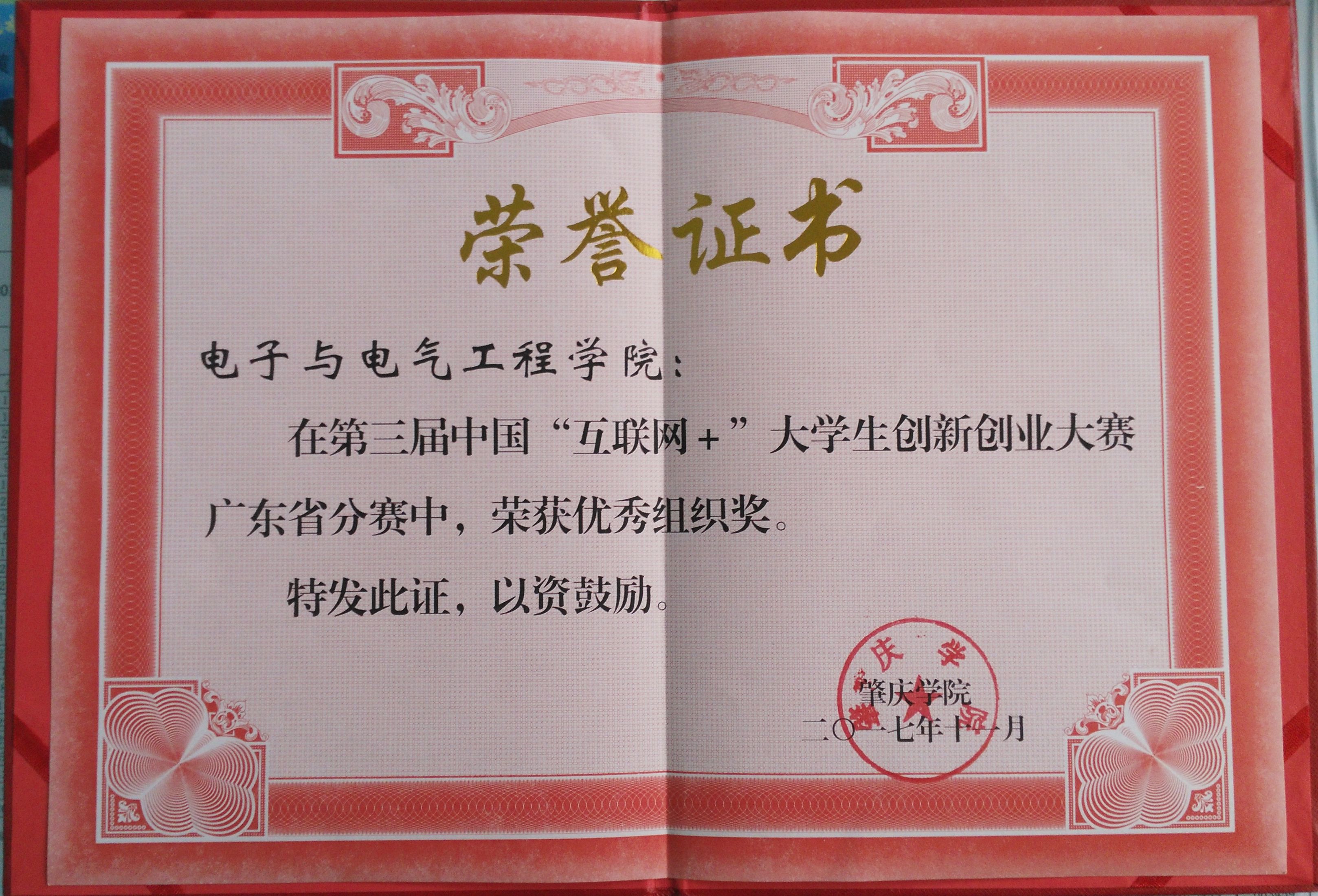 在第三届中国“互联网+”大学生创新创业大赛广东省分赛中,我院荣获优秀组织奖。此奖项的获得,是我院师生共同努力的结果。