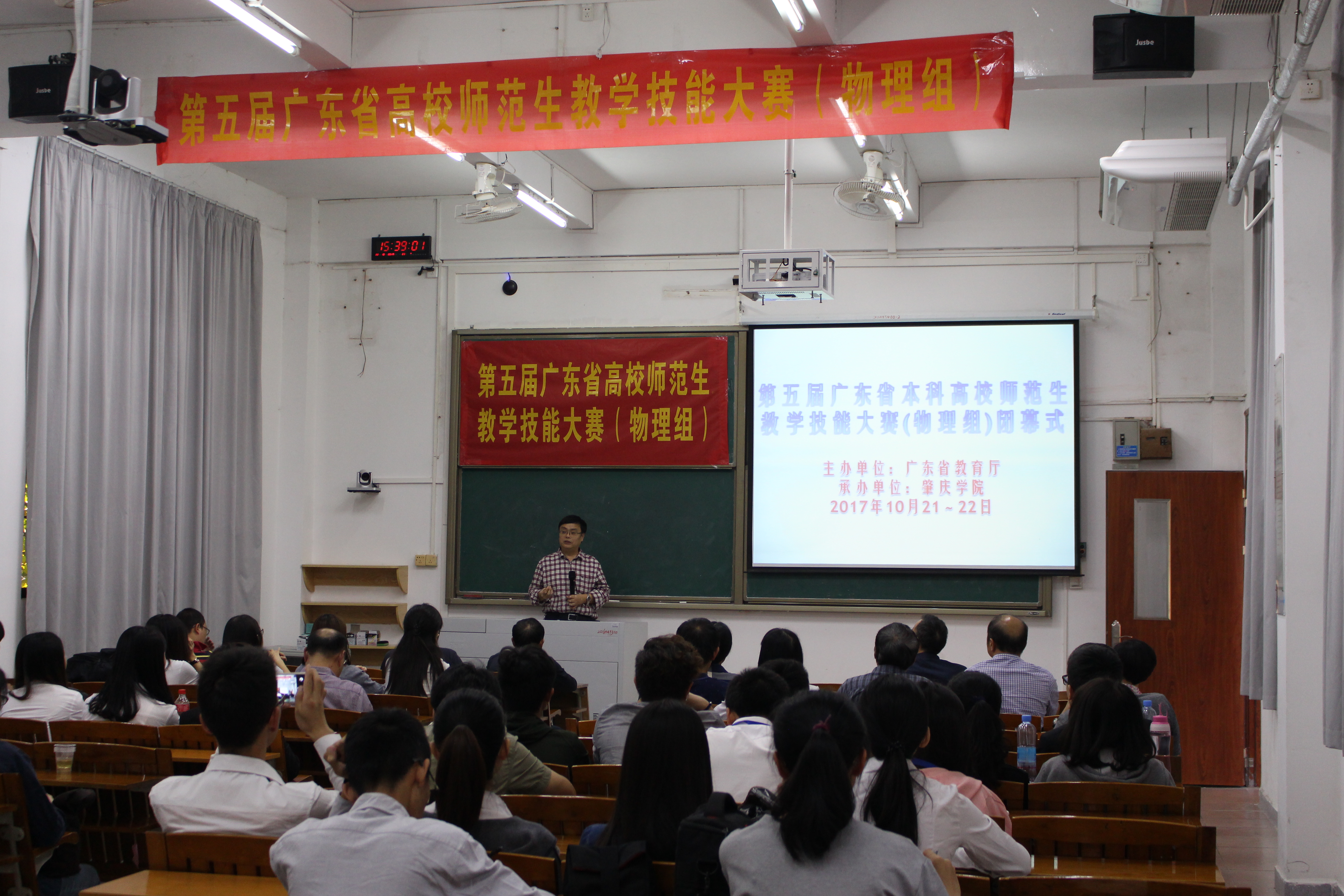 本网讯(记者 卢永康)为了促进教学改革,提高全省师范生的教学技能和综合素养,2017年10月21日-22日,由广东省教育厅主办,williamhill威廉希尔官网承办的第五届广东省本科高校师范生教学技能大赛(物理组)在我校第一教学楼成功举行。