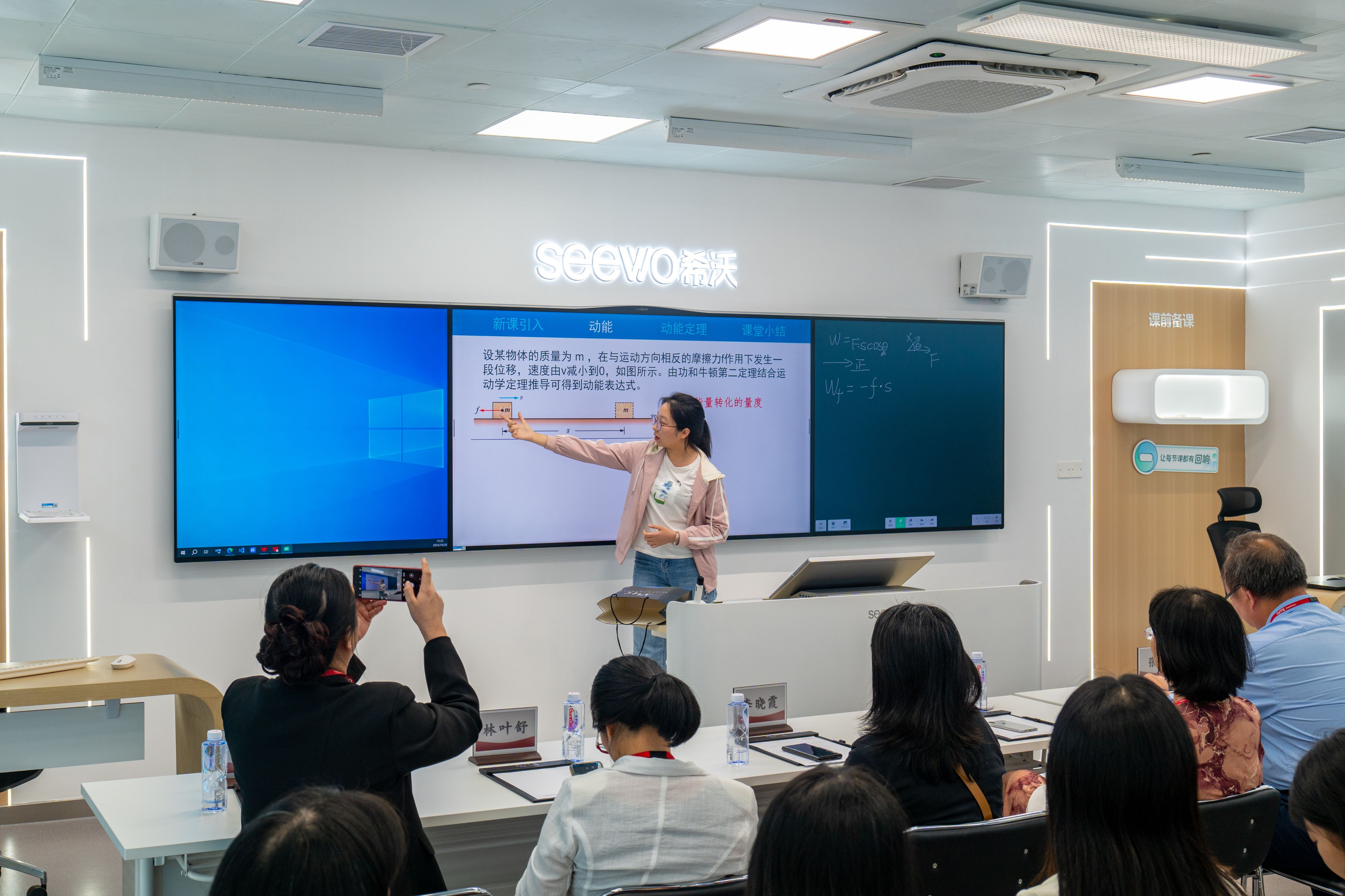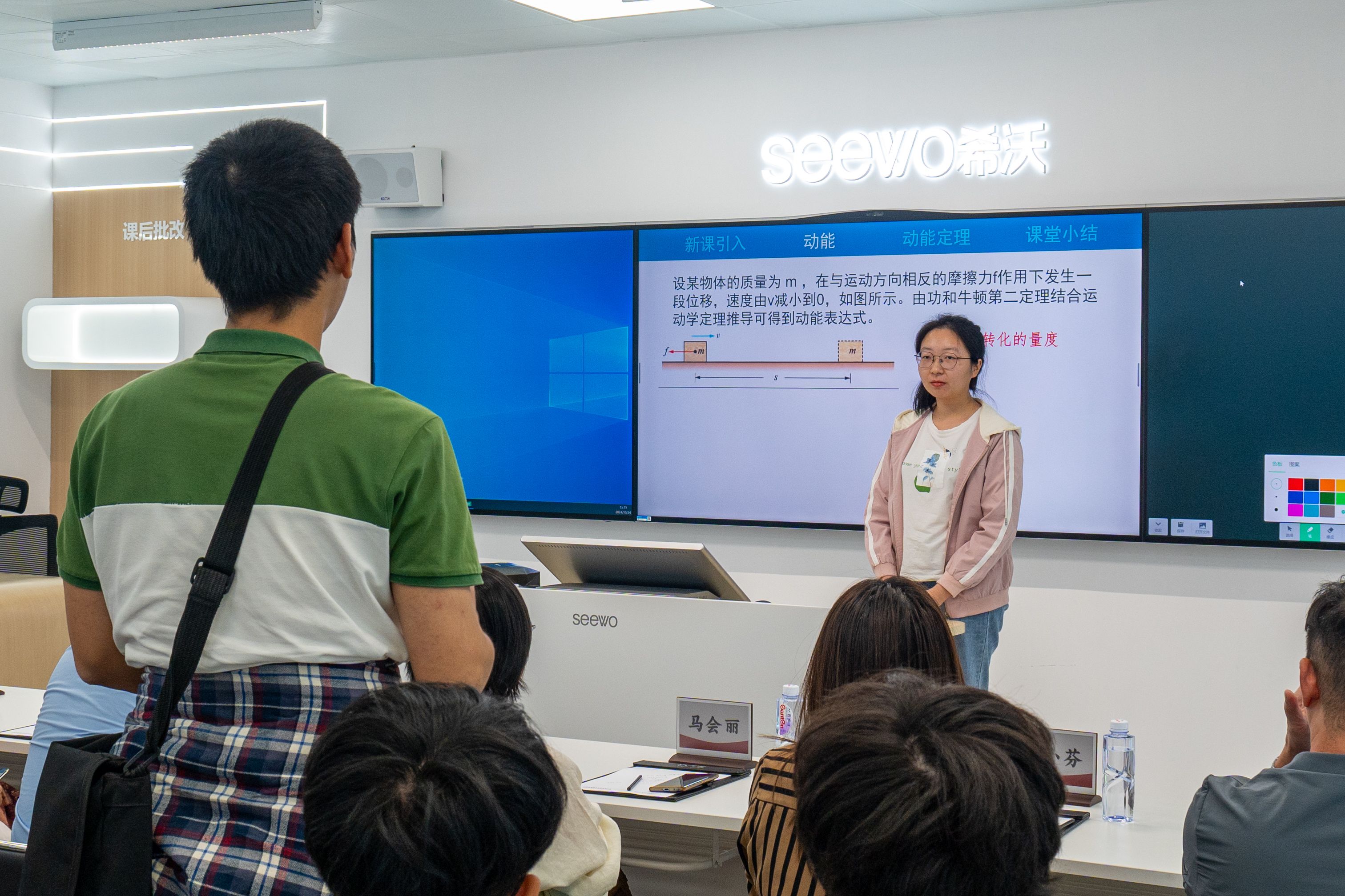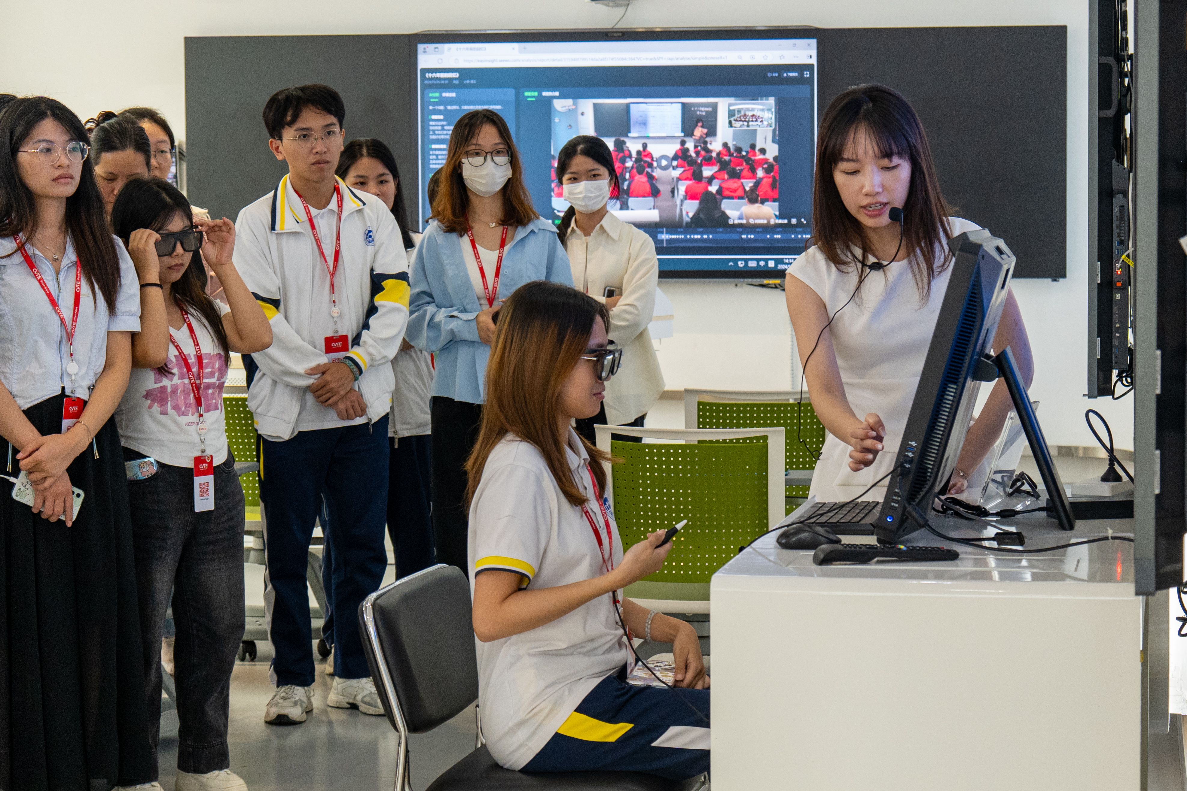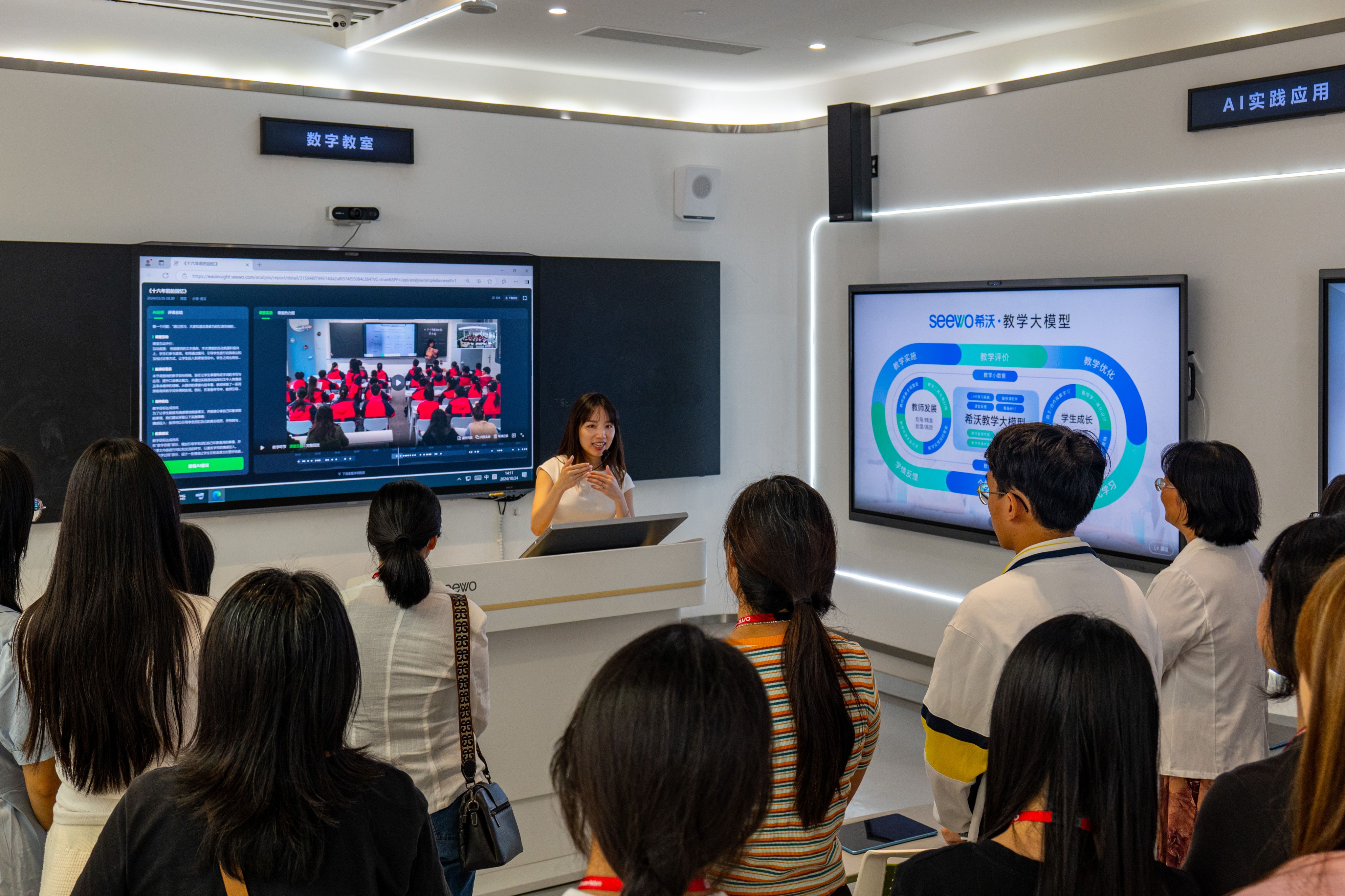 我院2022级物理学专业龙嘉琪等同学还现场试讲,现场即时地体验到希沃的大模型对其讲课的智能评析,领会到目前科技前沿发展对教师事业工作的进一步发展与提升,感悟到在时代科技飞速发展、日新月异的今天,运用大模型来提升我们日常教书育人能力,也是未来教育行业改革的一个重要走向。