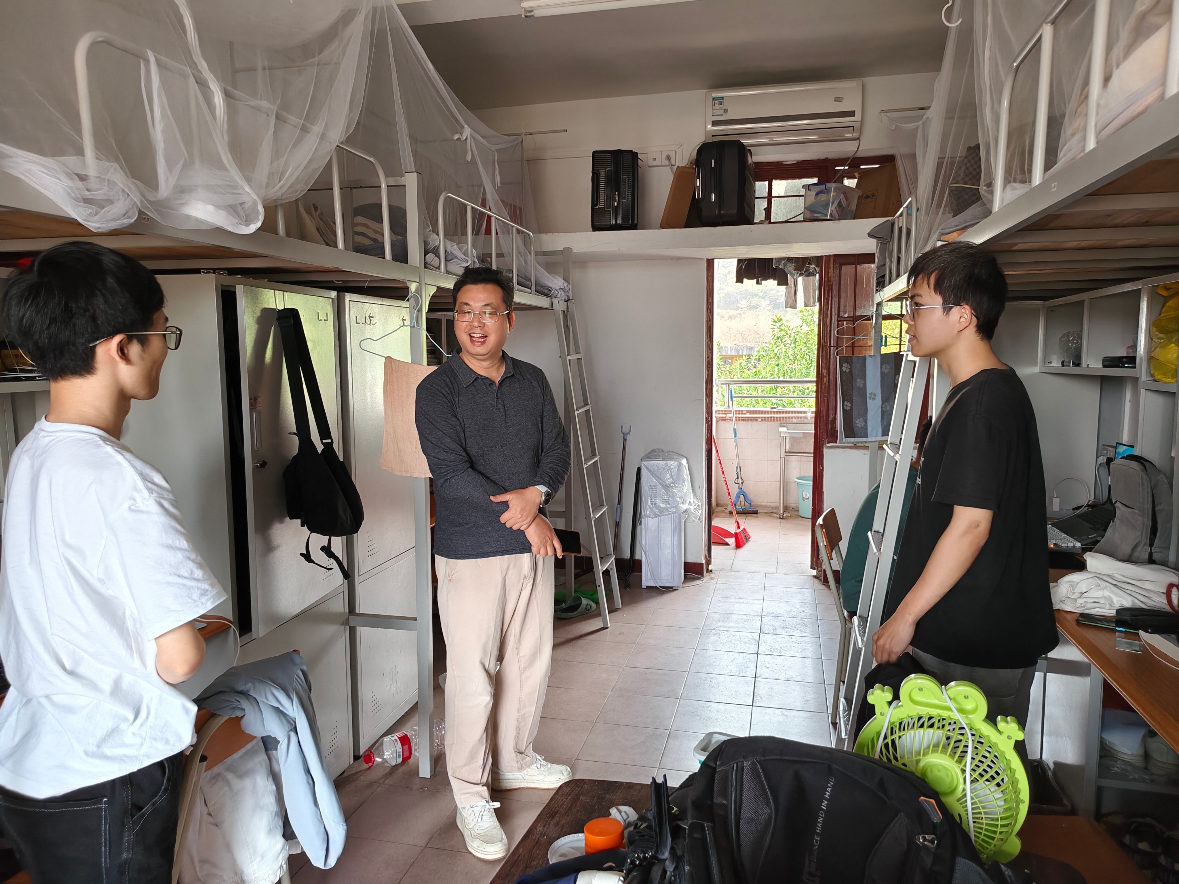3月2日下午,学院党委副书记傅汉球带领全体辅导员、班主任老师深入学生走访宿舍,了解学生的学习、生活、就业及新学期规划情况,关心学生身心健康和思想动态,希望大家尽快调整状态,注意天气变化,防寒保暖,同时要做好宿舍清洁卫生内务和注意消防安全,防止火灾发生,鼓励同学们在新学期初要明确学习目标,制定好学习计划,调整好日常作息,以饱满的精神状态迎接新学期。