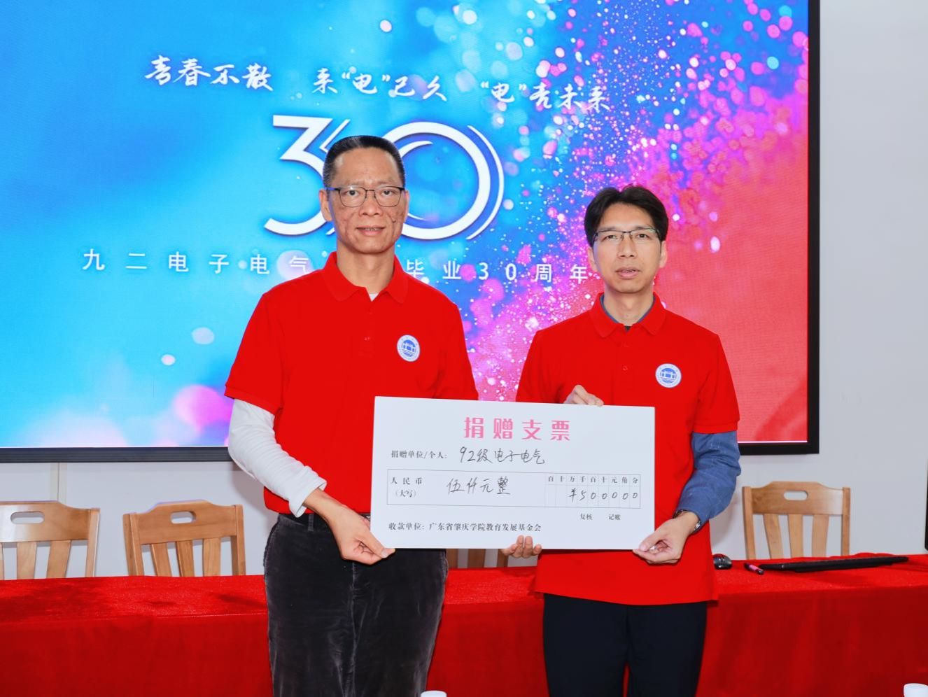 座谈会上,班长曾宇雄代表所在班级全体同学向母校捐赠了 5000 元,以表达他们对母校的深厚情谊和对教育事业的支持。王浩发也向全体校友回赠了学院精心制作的校庆纪念册——《初心不改 虽远不怠》,纪念册中记录了学院的发展历程、重要成就以及师生风采,它将成为校友们与母校之间情感纽带的又一见证。