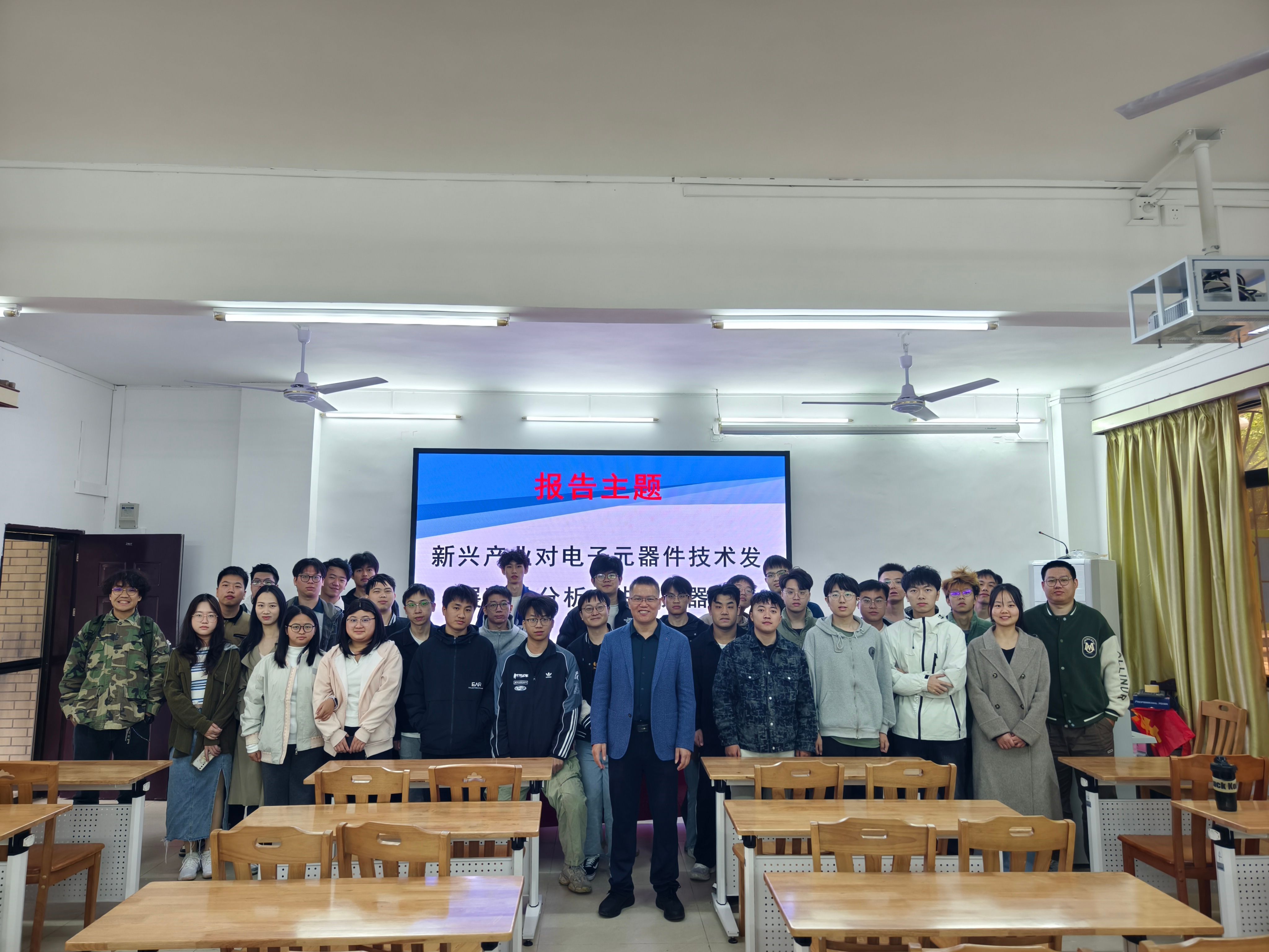 本学期,学院紧扣评估标准,持续搭建多元化学术平台,成功承办广东省物理学年会,特邀龚新高、景益鹏、常凯三位院士作大会报告,为师生带来了顶尖的学术视角与思想启迪。同时,邀请行业专家导师徐建平、黄昆走进课堂,结合实战经验解读新兴产业对电子元器件技术的驱动作用,实现了学术理论与行业需求的深度衔接。