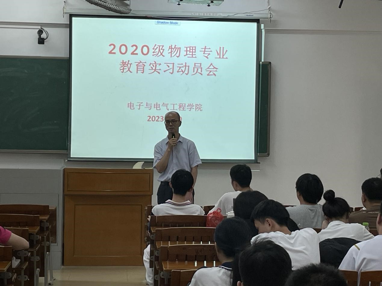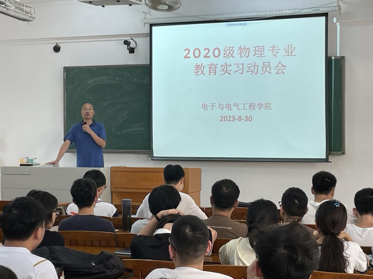 【本网讯】8月30日下午,我院2023年秋季教育实习动员大会于第二教学楼202教室顺利举行。williamhill威廉希尔官网副院长程绪信、班主任老师于浩、实习指导教师赵肇雄和2020级全体物理师范生出席了本次大会。动员会目的是为加强物理专业的人才培养,确保2023年教育实习工作的顺利开展。