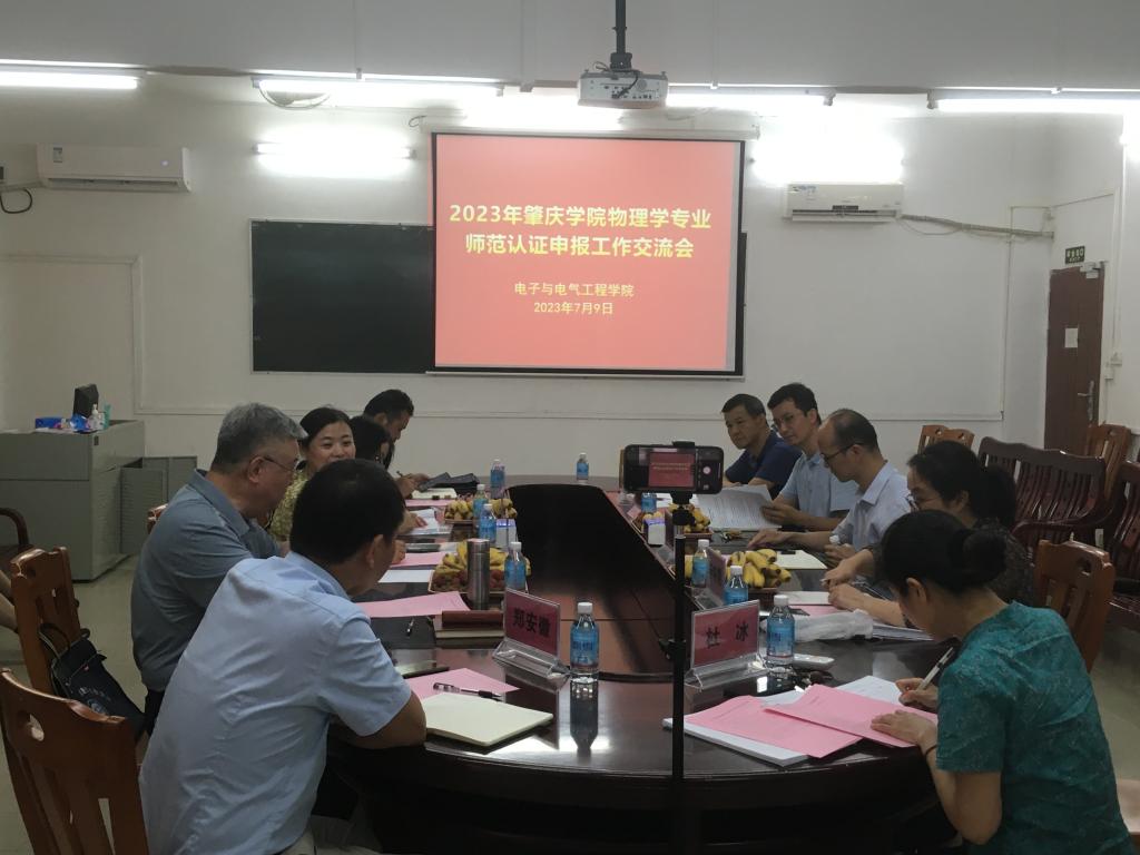 【本网讯】7月9日,电子与电气学院院召开物理学师范专业认证申报工作交流推进会,专门邀请校内外专家来学院指导物理学师范专业认证工作。岭南师范学院物理科学与技术学院副院长田春华副教授、学校评估与督导中心主任李佩环等专家出席并指导工作。我院党政领导班子成员、物理学系主任、专业负责人、物理学系全体教师和有关管理人员参加会议。会议由党委书记黄伟主持,广工帮扶队员我院副院长刘立程作项目主持并作具体安排讲解。