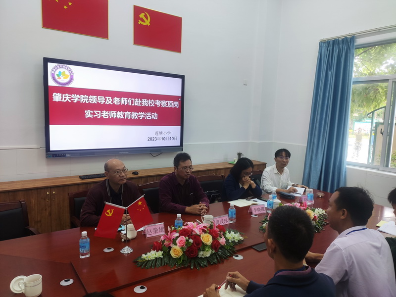 【本网讯】2023年10月9-10日,williamhill威廉希尔官网实习工作组按照学校统一安排,负责走访鼎湖区和肇庆新区相关实习基地各中小学校,探望了解我校实习生顶岗实习、了解实习工作进展、协调解决实际问题。鼎湖区教育局非常重视实习基地建设和实习工作安排,副局长韦刚参加座谈会,并专门派出教师发展中心邓石生部长陪同走访了解,在走访检查中,得到了各中小学领导老师的热情接待。