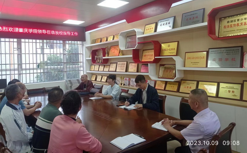 10月9日,学院实习检查组在实习主任赵肇雄带队下,与聂东、刘愉快、彭洁等老师走访巡查了鼎湖区的鼎湖中学、中心小学等8个实习基地,深入了解我校各专业实习生在中小学实习的基本情况。