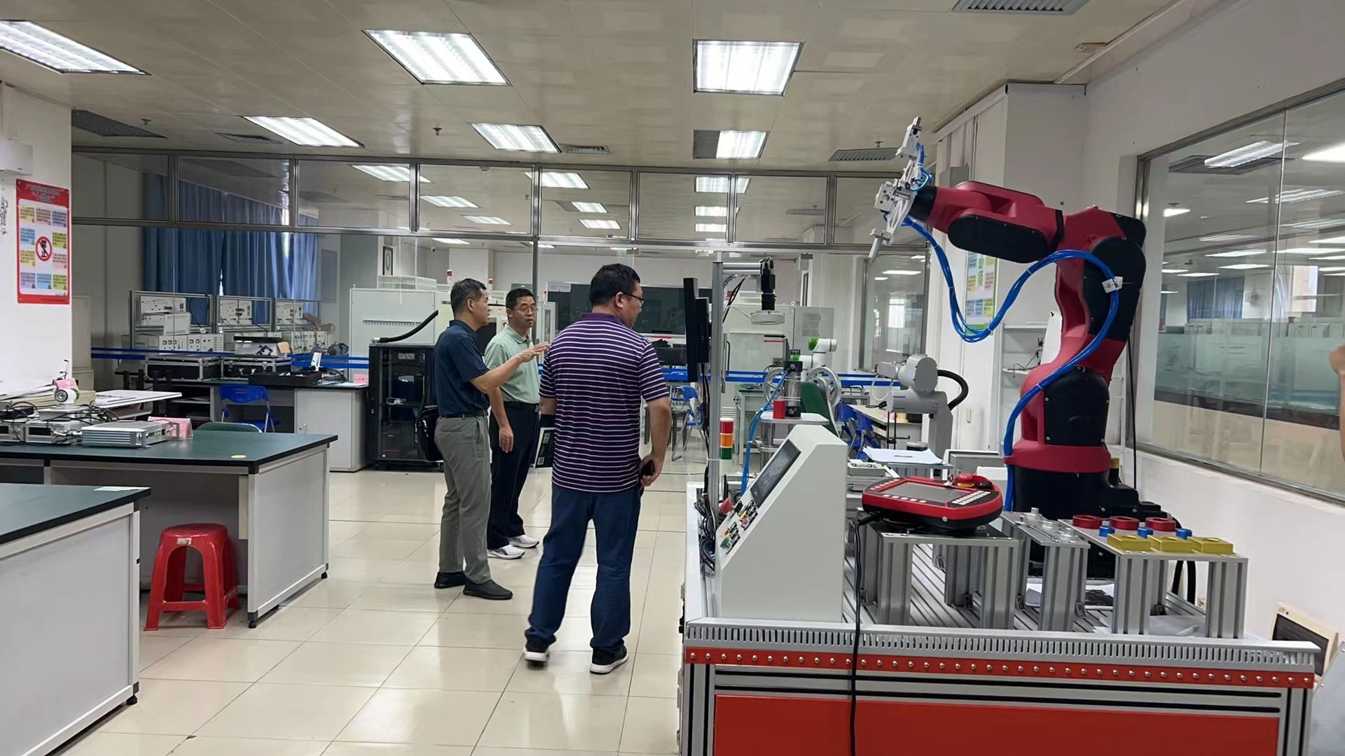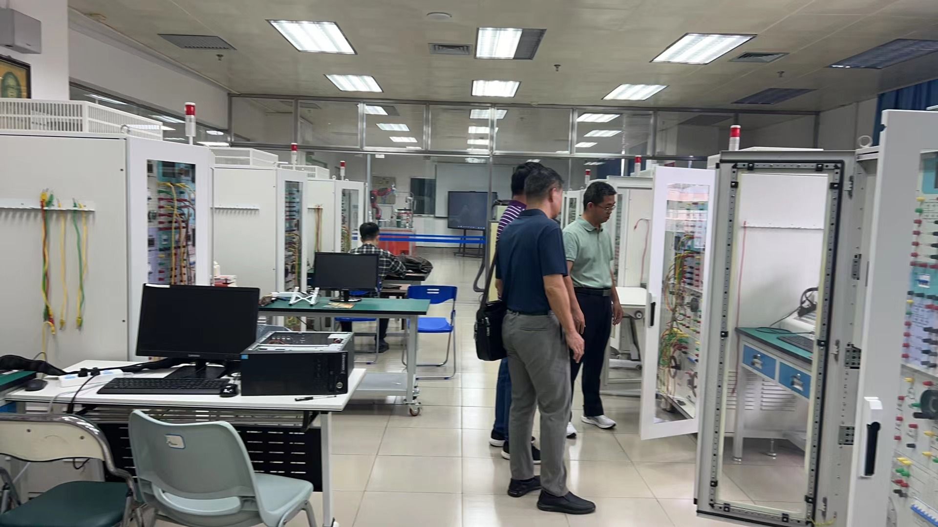 调研认真走访了电路/电工技术实验室、电气工程技术实训室、电子技术实验室、电力系统动态模拟与数学仿真一体化实验室、信号与控制实验室等实验场所,深入了解了各实验室的设备配备、教学安排和管理模式。在调研过程中,团队成员与广西大学的相关负责人就实验室建设及实践教学中的问题和经验进行了交流,为后续进一步优化我院实验教学提供了参考依据。