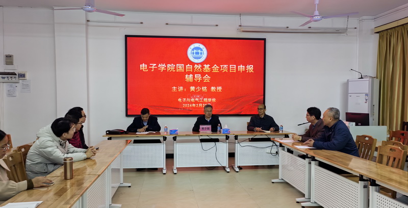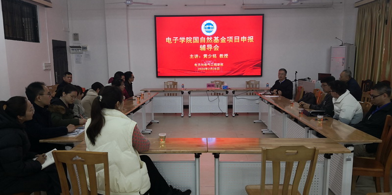 【本网讯】2月28日,电子学院特邀广东工业大学黄少铭教授莅临我校做2024年国家自然科学基金项目申报辅导。我院院长陈庆华、党委书记王浩发、副院长程绪信和刘立程等领导出席和13位博士及高级职称教师参加辅导会。