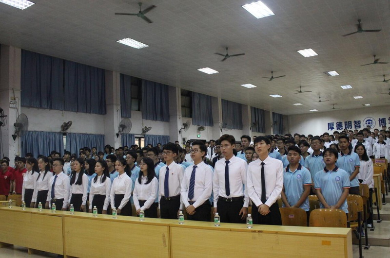 大会在主持人的致辞中拉开了序幕,全体人员起立奏唱国歌。大会开始,由院团委书记张聪慧老师为大会致开幕词,她对电子学院各大机构一年来的学生工作做了全面回顾和系统总结,同时希望各位学生干部能秉承“厚德、明智、博学、力行”的校训,齐心协力,再创佳绩。接着,校学生会执行主席郑佳辉同学及2018-2019学年院学生会主席陈娟同学对我院过去一年举办的活动进行了肯定,对学生干部的付出表示感谢,同时希望新一届学生干部可以永葆初心,积极进取。随后,主持人宣布我院各学生机构新任干部名单,并颁发聘书后,新任团委副书记温文玉同学代表新一届学生干部郑重承诺,会在今后的工作中更加积极工作,更好的完成任务,为电子学院的发展贡献一份力量。大会的最后,由电子学院党委副书记傅汉球做总结发言,他叮嘱所有学生干部们,要不断加强自身的思想道德修养,提升自己各方面的能力,在学习和工作的同时不断完善自我,提升自我;同时他也要求同学们合理安排时间,协调好学习和工作之间的关系,和学院一起共同使我院学生工作迈上新台阶。