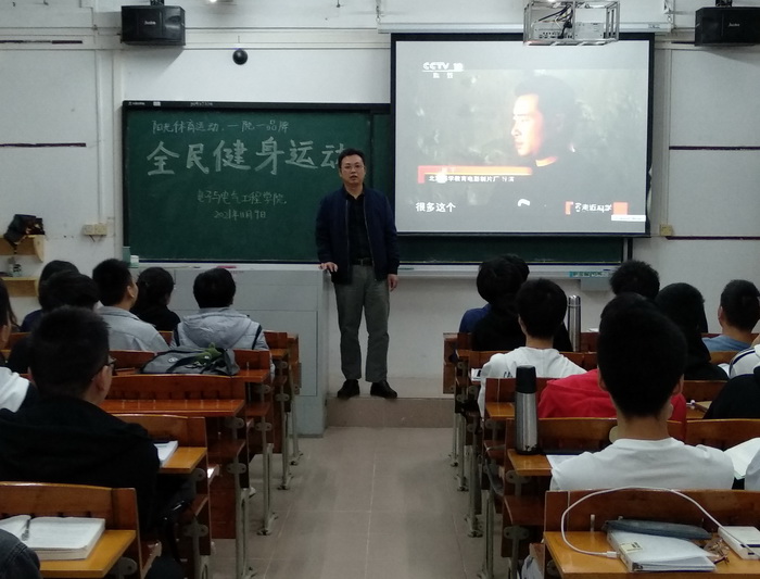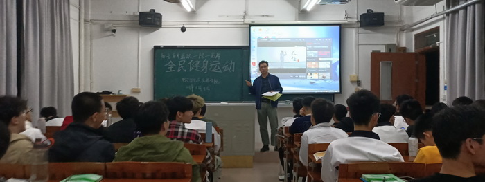 【本网讯】2021年11月9日晚,williamhill威廉希尔官网在2021级新生各班级课室中开展全民健身运动--推广和普及陈式太极拳。全体新生通过观看由中央电视台与国家体育总局联合拍摄的纪录片《最高境界格斗术之--解密太极传说》,由陈式太极拳第十一代传人张志俊先生科学解密太极拳,从中学习和了解陈氏太极拳。2021级全体新生、值班老师、带班党员、体育部骨干共650多人参加活动,党委副书记傅汉球出席讲话并参加活动。