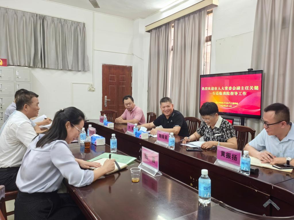 【本网讯】6月12日,市人大常委会关键副主任一行到我院走访联系陈庆华教授、院长,随行的还有市科技局二级调研员陶烽英,市科技局合作交流与专家服务科科长陈庆生,市人大常委会预算工委办公室主任黄振杨。我校广工帮扶队长刘怡军,人事部副部长田苗、科技部副部长潘林,我院党委书记王浩发等出席走访活动。