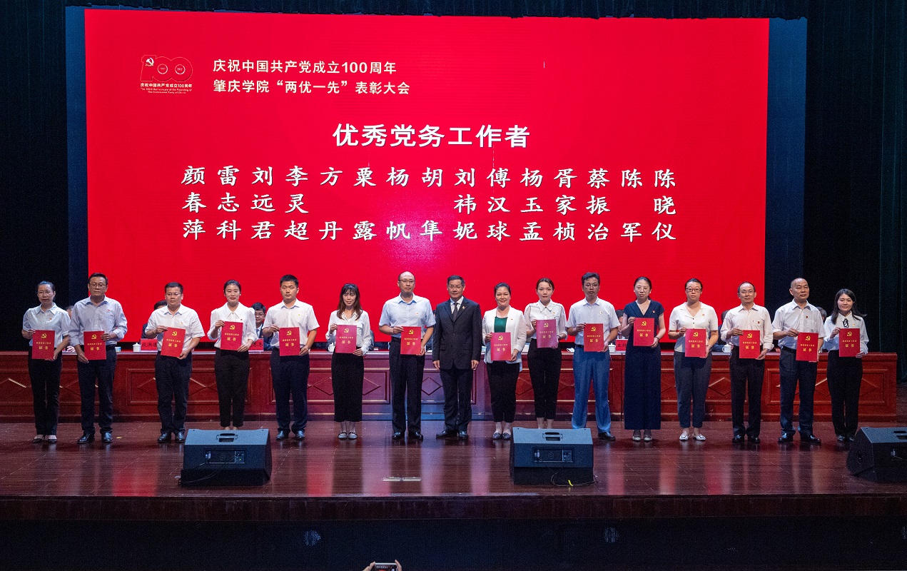 活动三:下午4点在学校剧场中心,我院师生代表参加了庆祝中国共产党成立100周年williamhill威廉希尔官网“两优一先”表彰大会暨加强基层组织建设会议。我院院长陈英俊同志作为肇庆市优秀共产党员发言,陈院长回顾了在党的领导下自己的成长经历以及在williamhill威廉希尔官网工作35年以来取得的一些成绩,从一名普通老师成长为大学教授,并表达了自己对党的感恩之情。表彰大会上,我院党委副书记傅汉球同志获得williamhill威廉希尔官网“优秀党务工作者”称号,党员刘浏老师、元泽怀老师以及周立廷同学获得了williamhill威廉希尔官网“优秀共产党员”称号。学院教师第二党支部获得“先进基层党组织”称号。