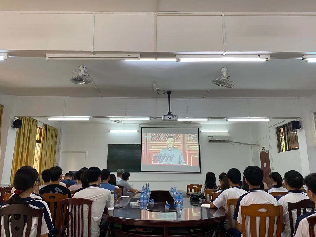 活动一:上午8点,我院组织师生在实验楼208室收听收看庆祝中国共产党成立100周年大会电视直播。学院党委委员、行政领导班子、党外代表人士、辅导员、教师、学生党支部党员代表和其他师生代表参加观看了本次直播。