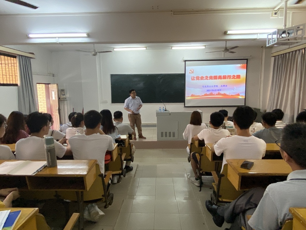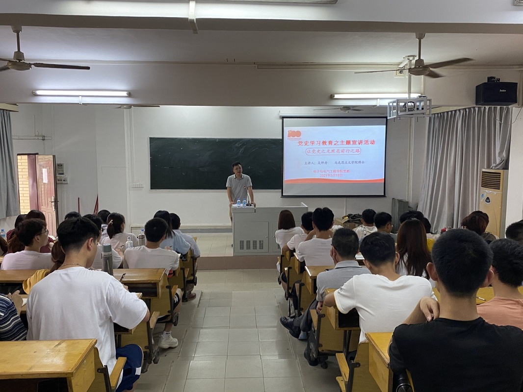 本网讯(通讯员 蓝胜婷)为更好地了解党的百年历史,牢记党的初心和使命,增强责任意识与使命情怀以信仰之光照亮前行之路。518日下午,williamhill威廉希尔官网在实验楼128室开展2021年度党史学习教育宣讲活动,邀请学校宣讲团成员、马克思主义学院吴烨舟博士主讲,我院教师党员代表、学生党员代表以及入党积极分子等一百余人参与了此次党课。宣讲活动由学院党委副书记傅汉球主持。