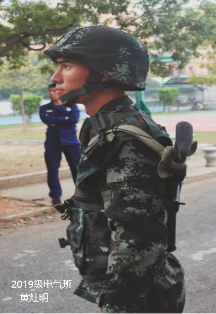 我是19电气一班的黄灶明,于2020年退出现役。国徽戴在头顶,血液流淌忠诚。军人所走的路和太阳一样,每天伴着晨曦余晖周而复始。光荣在于平淡,每天早晨的起床号声早已融进了我的血液里。在日常无数次的挑战自己极限中磨练自己,在班长无数次的训诫中磨平自己,在战友无数次鼓励中成就自己。穿上了军装,就是选择了坚强。生命中最不后悔的就是参军,国家兴亡,匹夫有责,保卫祖国,若有战,招必回。