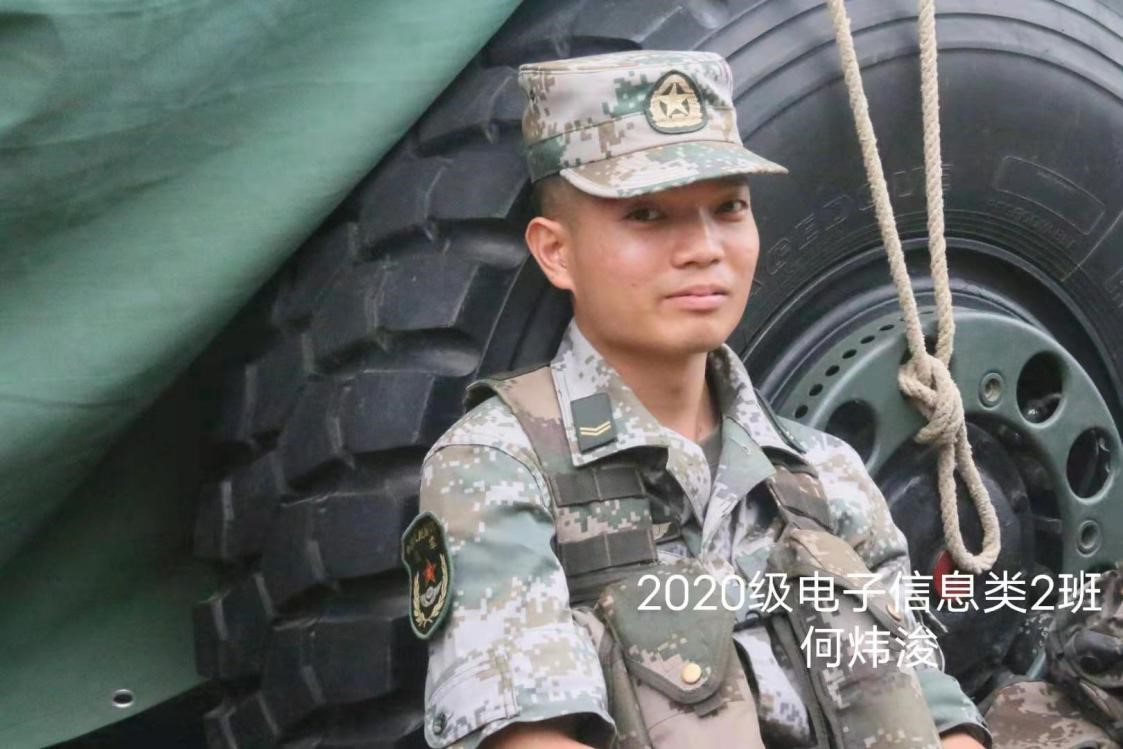 我叫何炜浚,是一名20年从部队里退役的大一新生。“当兵后悔两年,不当兵后悔一辈子”。这句话在当时感觉不到什么,但是回来之后才发现,当兵的这段日子,我真的学会了很多。在冰天雪地里打滚,在大雨中前行,在烈日底下操练;逆着风向前跑,跑土地,跑沙地,跑山地是我们的日常。虽然苦,却也在一点点的蜕变。从懒散到勤快,从向后缩到往前挺,在苦汗中逐渐变得刚毅。学会令行禁止,学会见机行事,敢做敢当。回到学校中,依然苦中作乐,迎着未知积极向前,做足计划面对难题,与宿舍,班集体共同努力,共同前行。