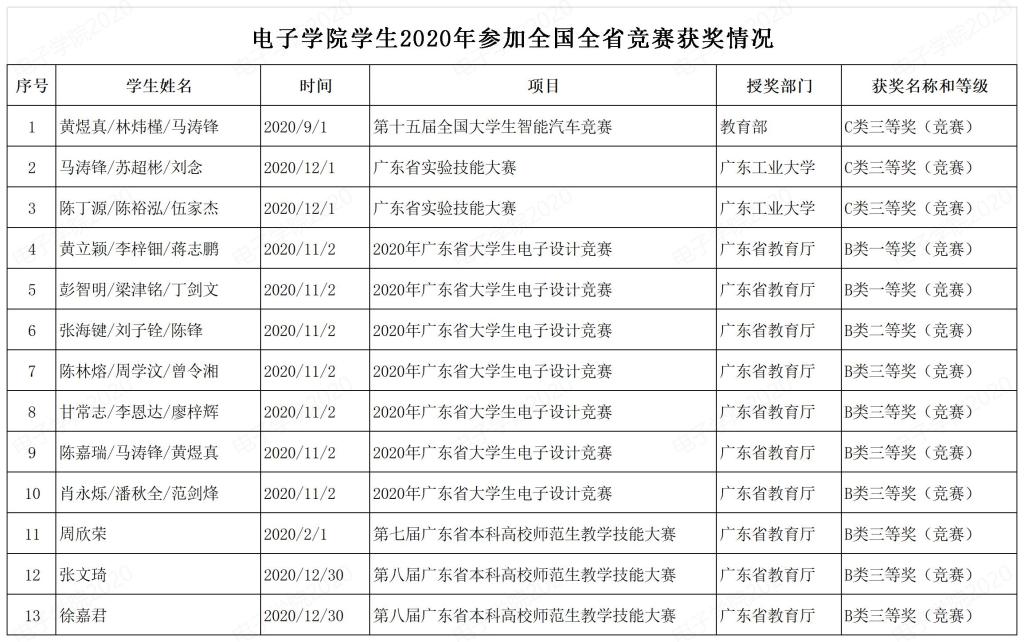 2020年学生参加全国全省电子竞赛获奖情况
